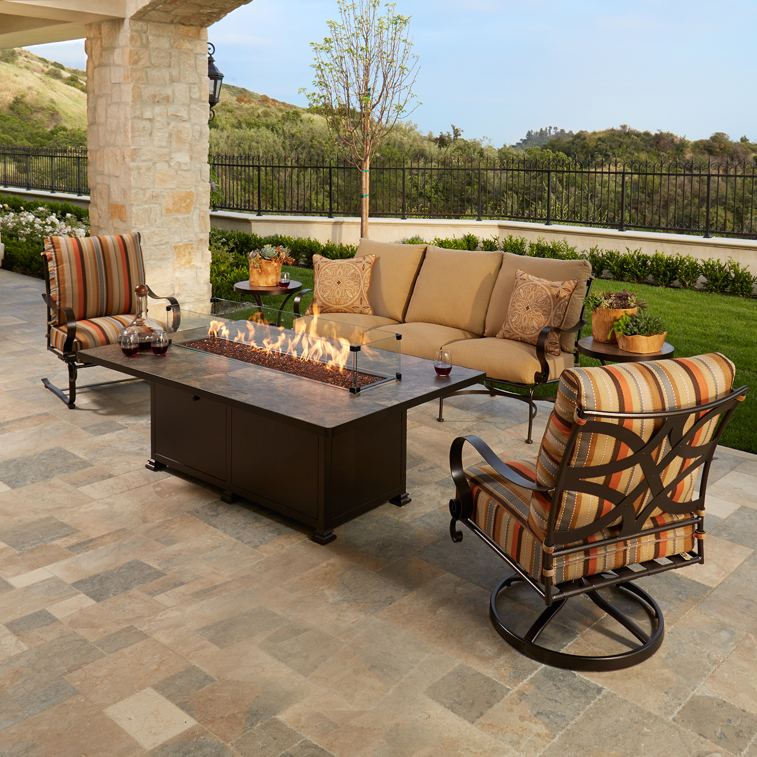 Marquette’s back seat is interwoven and stamped with aluminum rivets. The back is countered for back support and comfort. In addition, Marquette’s arms are hand forged and constructed of 1 1/2″ extra-wide flat bar that provides the perfect arm support. Marquette’s seating cushions are constructed of our Plush Comfort® cushioning system, providing the most comfortable seating that resists the absorption of liquids.
