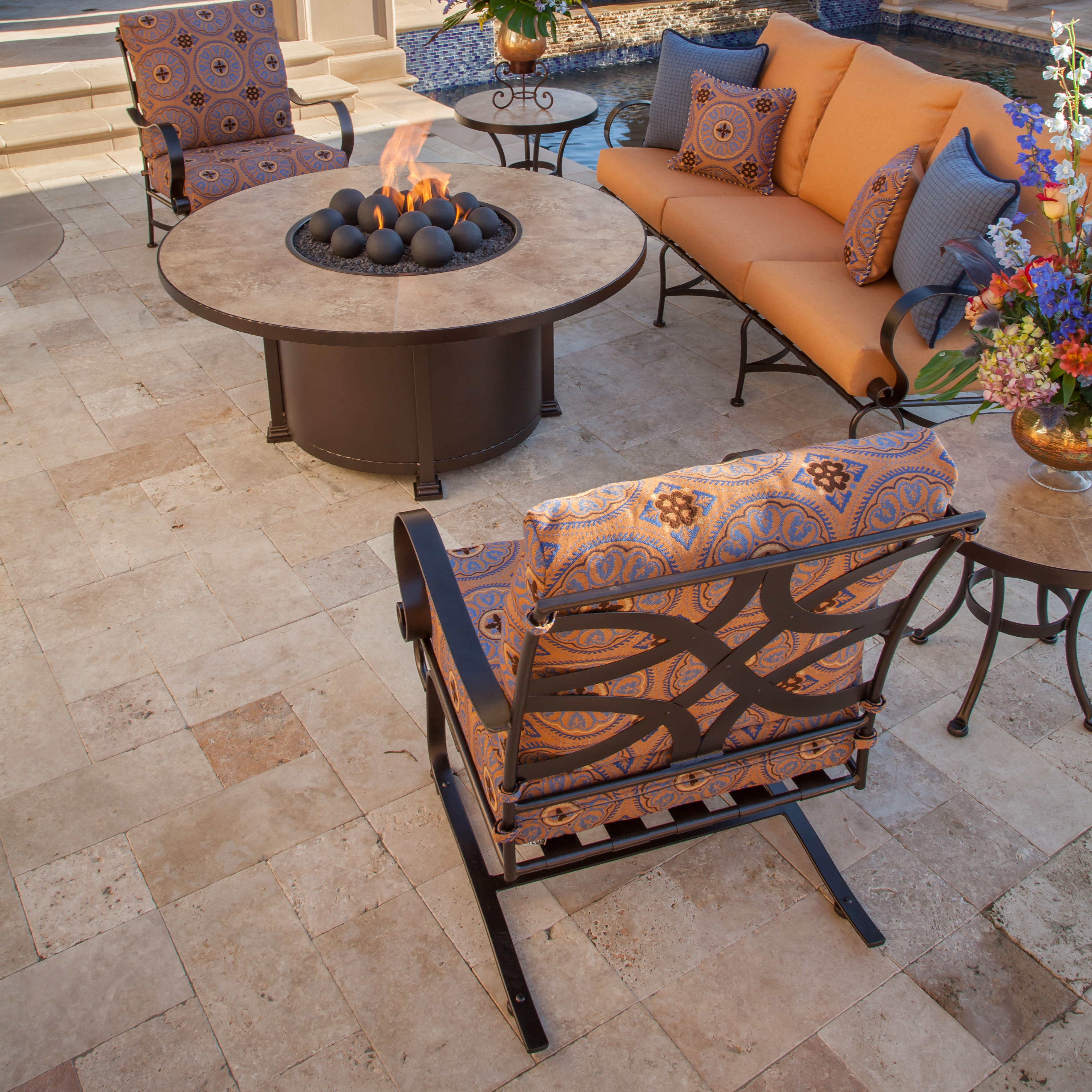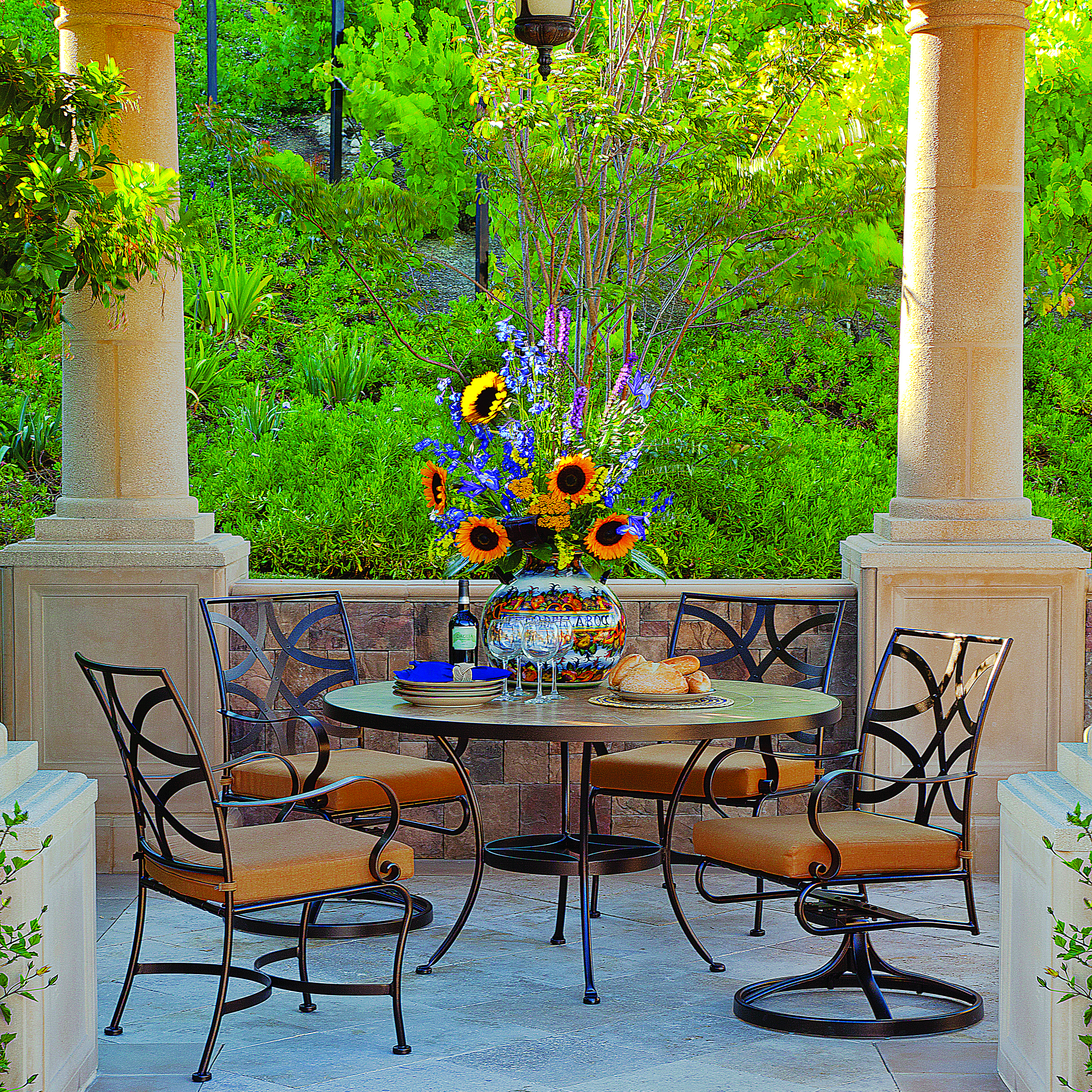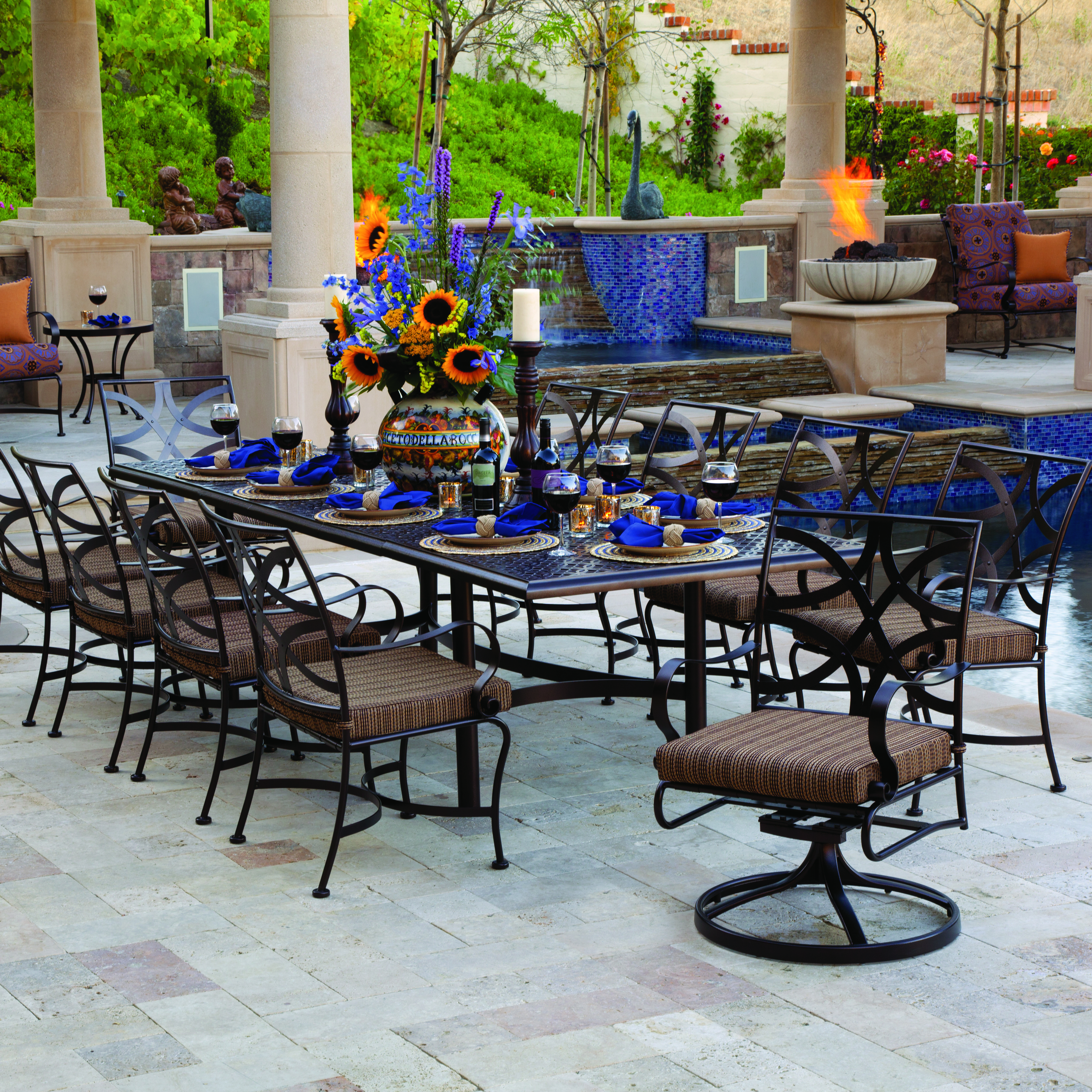 The Marquette collection combines both French and English styling to create a collection of elegant lines mingled with a touch of Tudor styling in easy-care Wrought Iron. Hand-forged extra-wide arms, a pillow back cushion on the deep seating, and spring steel seat straps give this collection added comfort.
