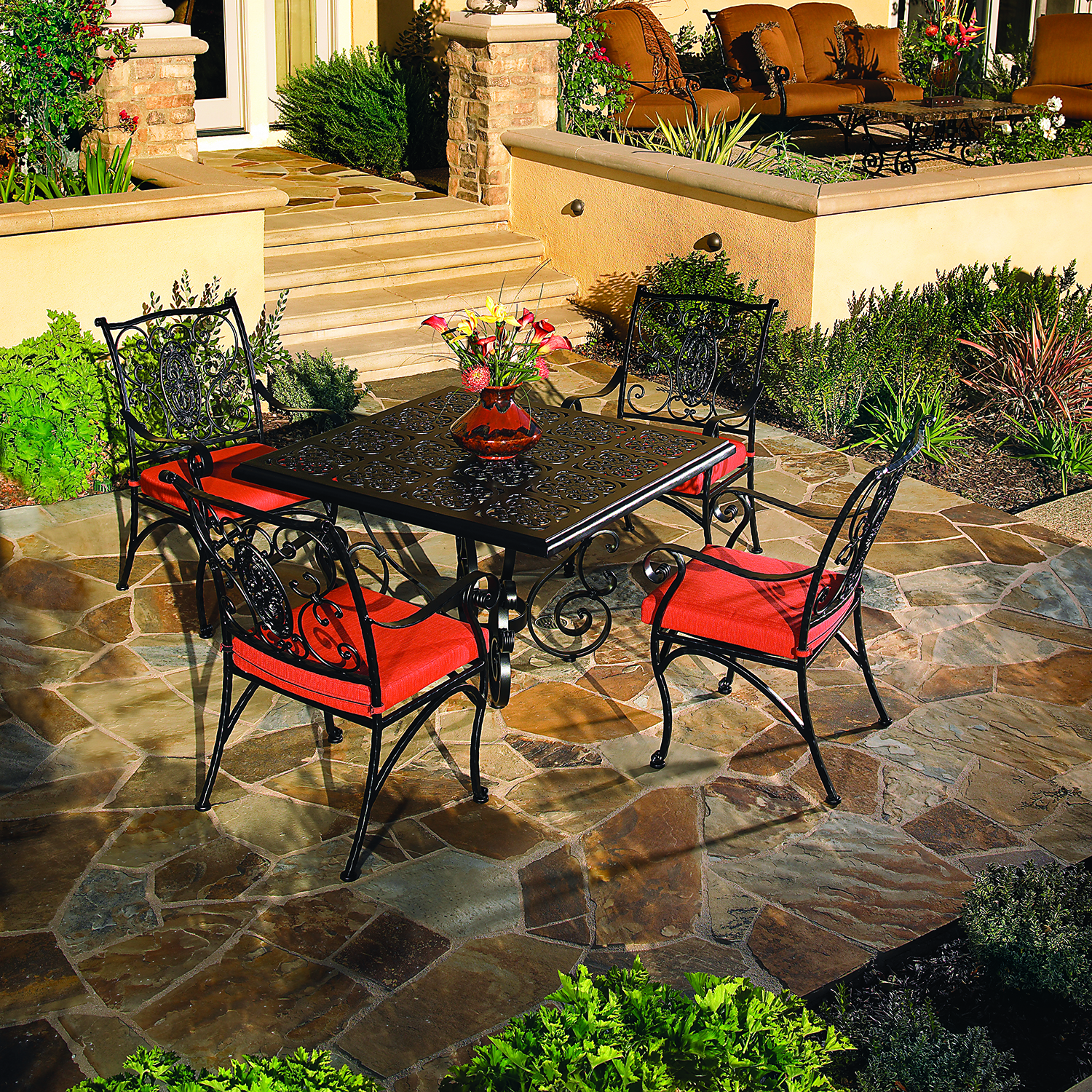 The deep seating of the San Cristobal collection creates a level of comfort not found in other outdoor seating manufacturers. The table bases of the San Cristobal collection are painstakingly forged by hand from solid bar stock to attain a genuine Old World feel!